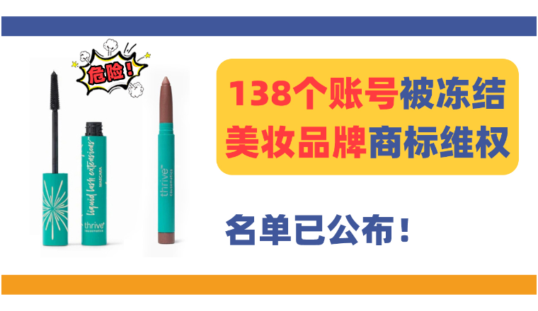 本案共维权5个商标,包括Thrive Causemetics、TIMELESS AMBITION等,主要注册在03类化妆品大类,售卖化妆品类目的卖家一定要规避这5个关键词!