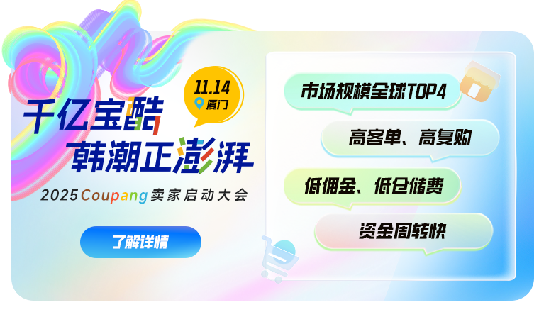 为了进一步强化与中国卖家群体的合作纽带,共同探索韩国市场的千亿商机,Coupang将于11月14日在风景如画的厦门海滨城市举办“2025Coupang卖家启动大会”。Coupang诚挚地邀请有意向入驻韩国的中国卖家参与此次大会,共同探索韩国市场的无限可能!