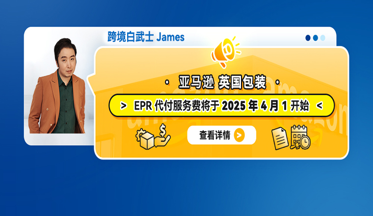 亚马逊英国站发布“英国包装的 EPR 代付服务费将于 2025 年 4 月 1 日开始”。公告如下: